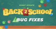 - The main site was reverted back to normal, but the test site still had the Back 2 School banner. Despite it seeming like the event was still in session, both the Back 2 School bonus and the achievements were unable to be obtained.