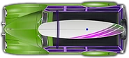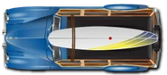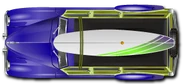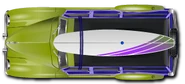 The only paintable aspects of this car are the body, surfboard, and rack. The default paint job is blue.